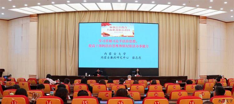 张志忠教授以《学习贯彻习近平法治思想,提高干部的法治思维和依纪依法办事能力》为题,从“系统把握习近平法治思想,提高法治思维和依法办事能力”和“自觉践行党内法规,守纪律讲规矩强作风”两个方面,作了深入浅出、内涵丰富的精彩授课,特别提到要认清形势、保持清醒、跟上节奏,积极构建“好政治生态”,践行“好干部标准”。讲座既有高屋建瓴的理论阐释,又有贴合实际的案例分析,更有针对性极强的实践建议,对学院全面贯彻落实习近平法治思想,推进清廉校园建设具有很强的指导意义。